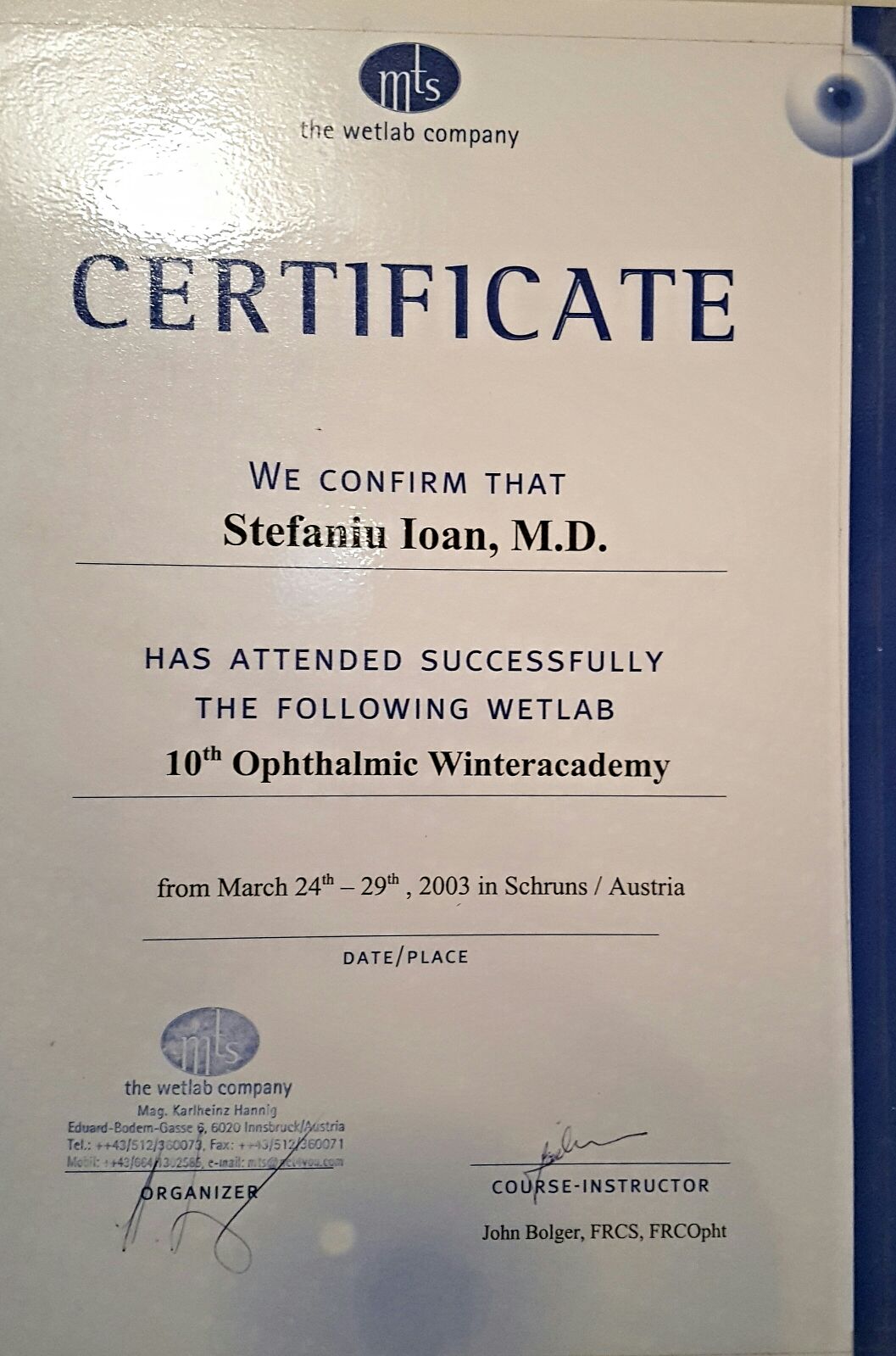 (2010-prezent) WEST EYE HOSPITAL, Bucuresti - Medic Primar Oftalmolog, Doctor in Stiinte Medicale